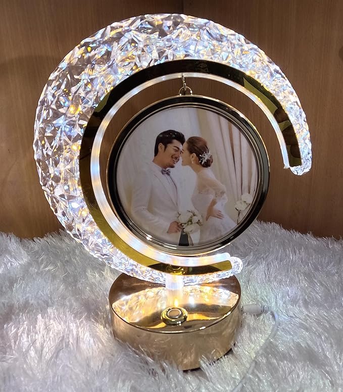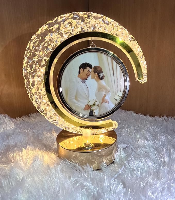 Crystal Moon LAMP Photo Frame for Gifting, Surprise and Anniversary Gifting Night Lamp