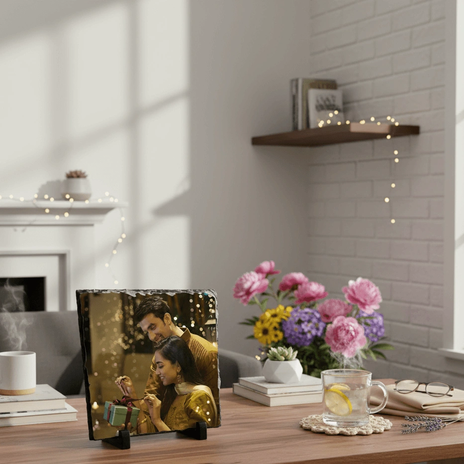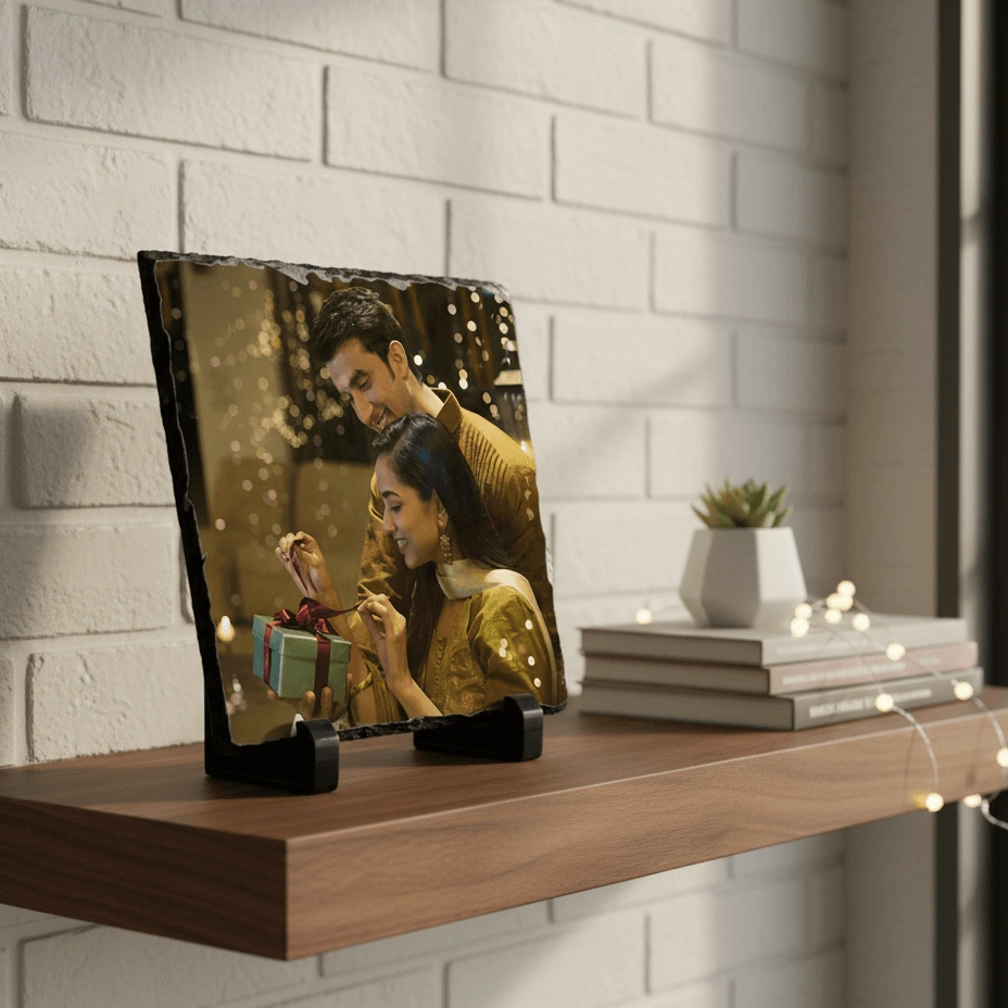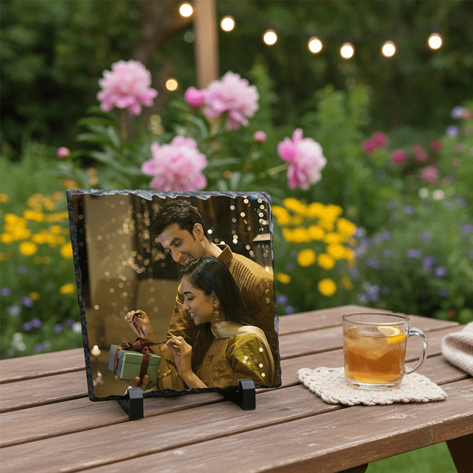 • Custom photo on natural rock slate