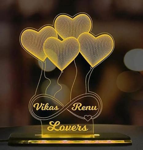 Personlized Acrylic Heart Shape Table lamp for cupple Child Girls Boys Friends on Special Days Size (12 * 8) inch
