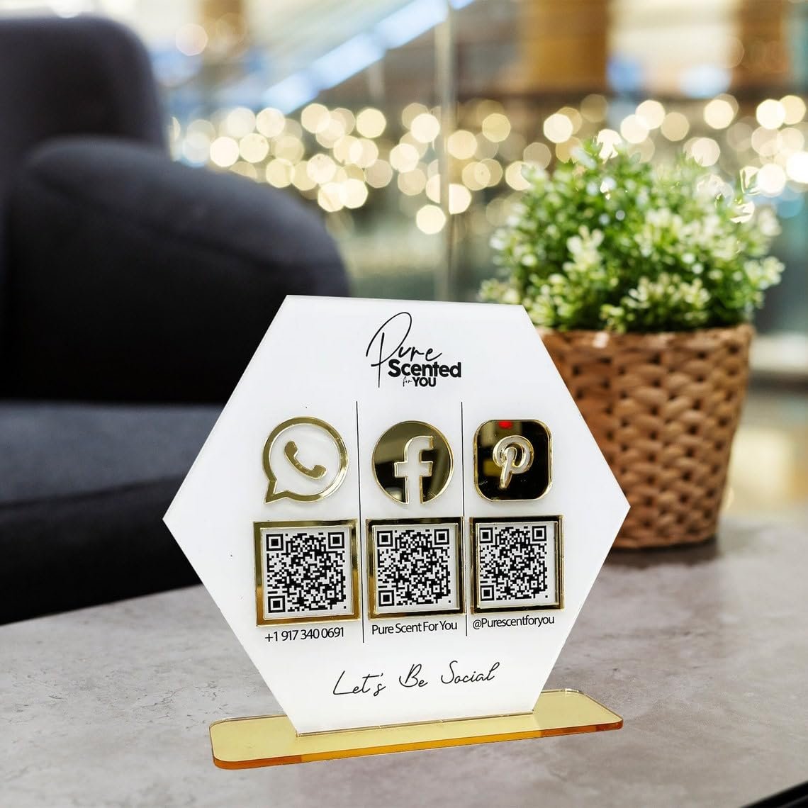 • Clear Visibility: Transparent acrylic holder keeps your QR code visible and protected while maintaining a modern aesthetic